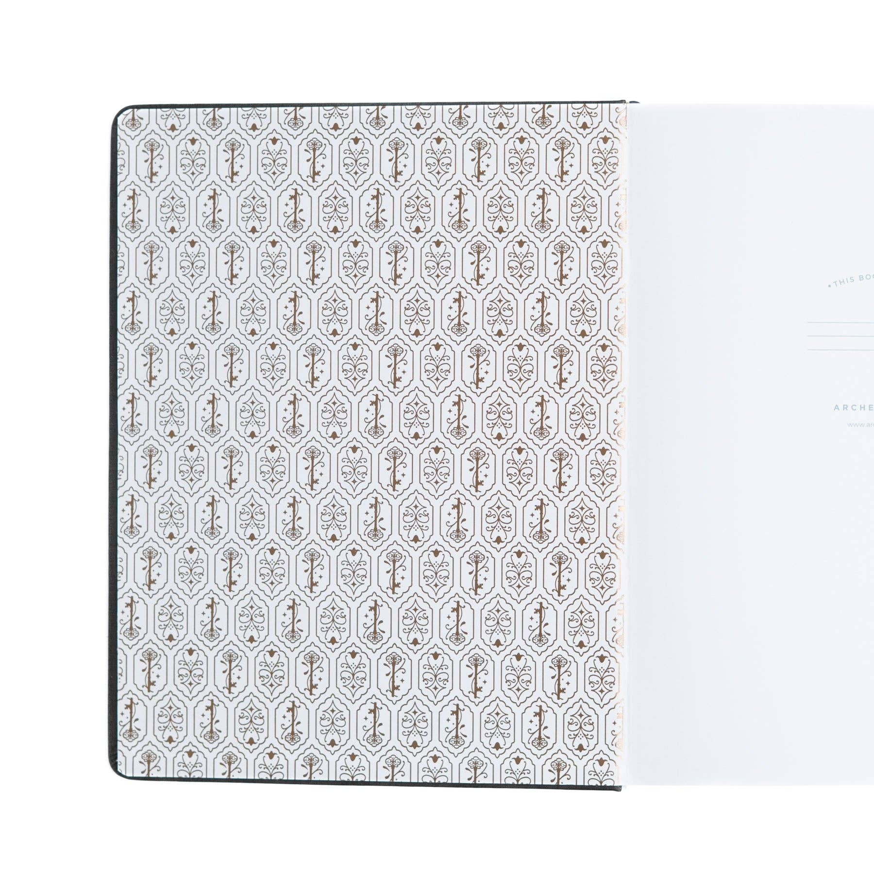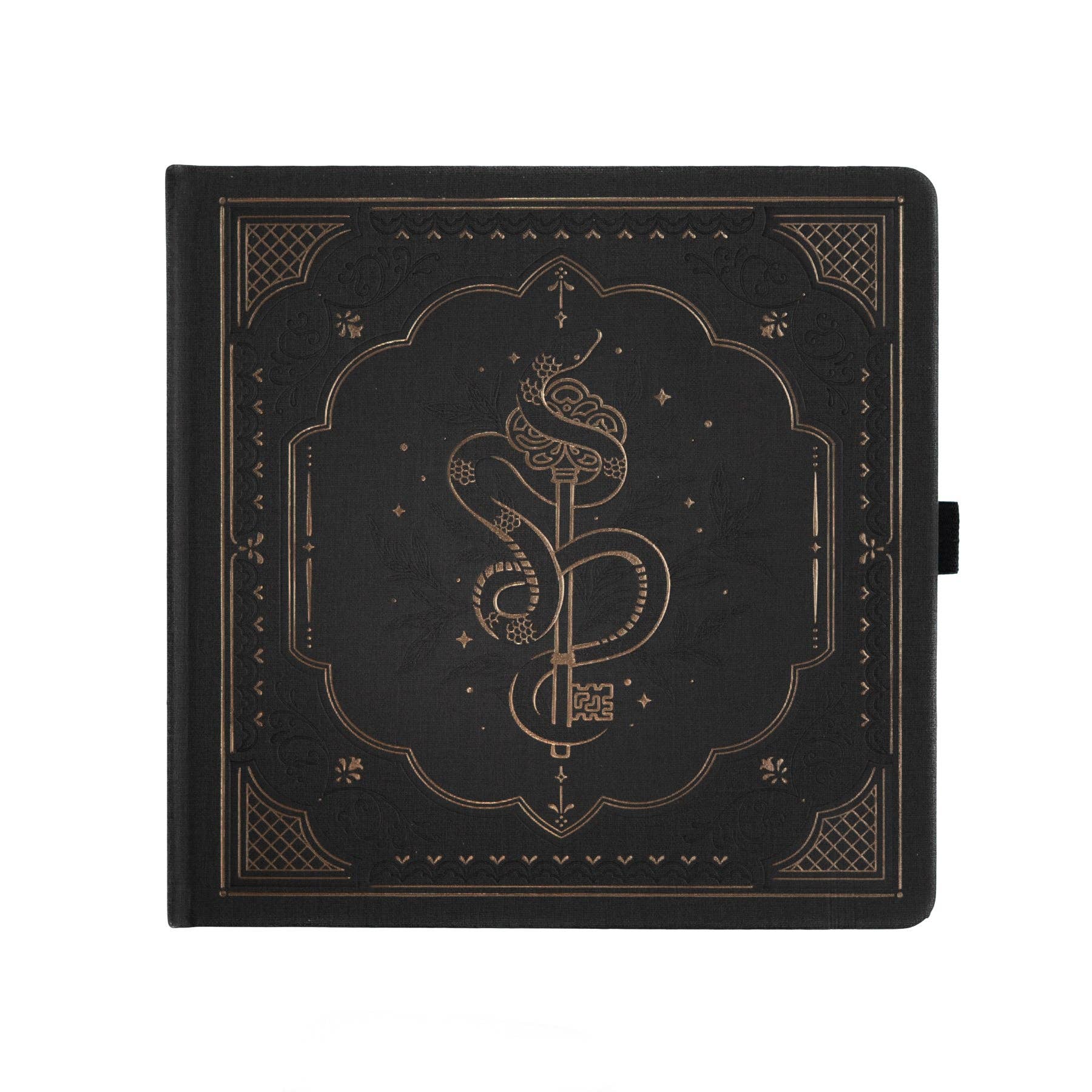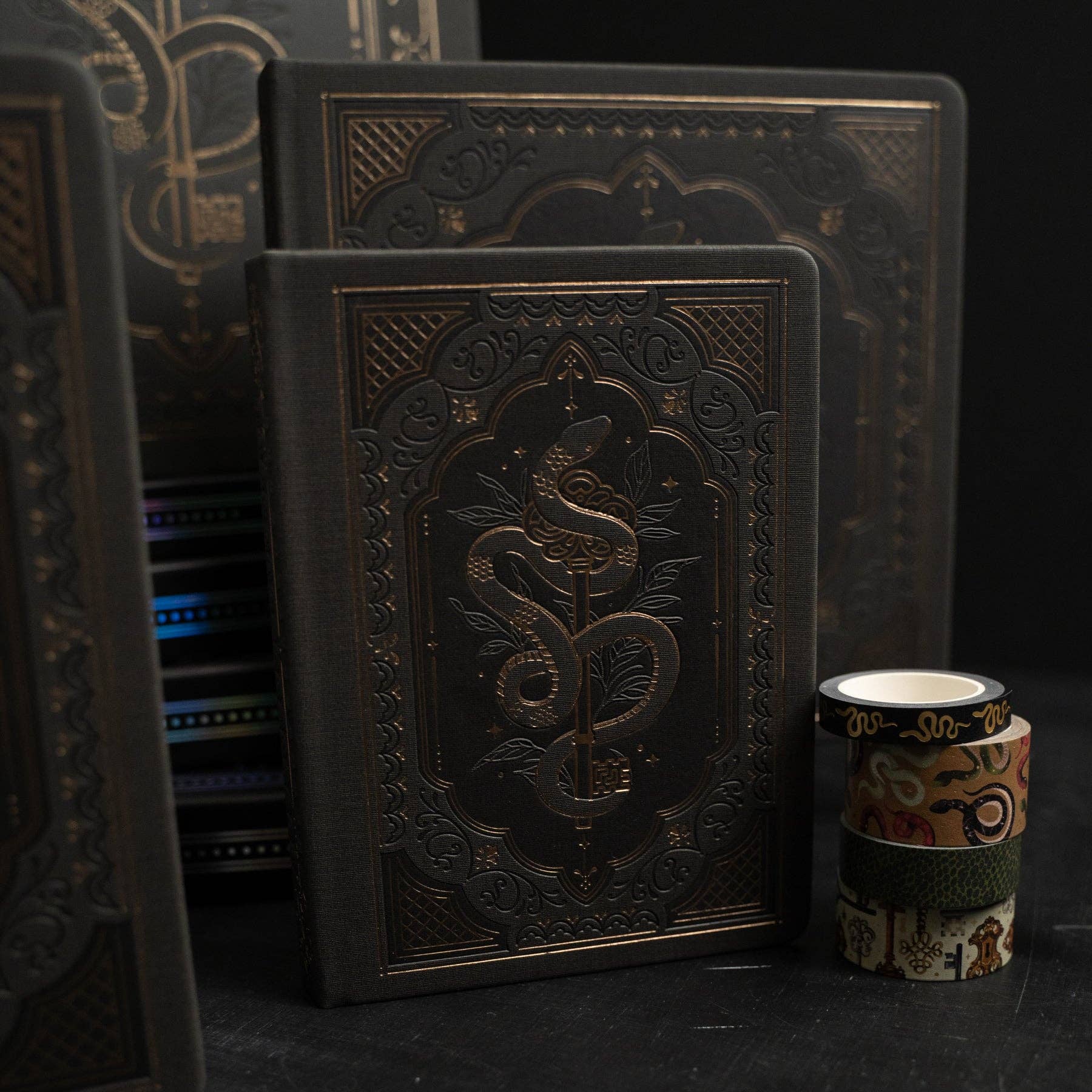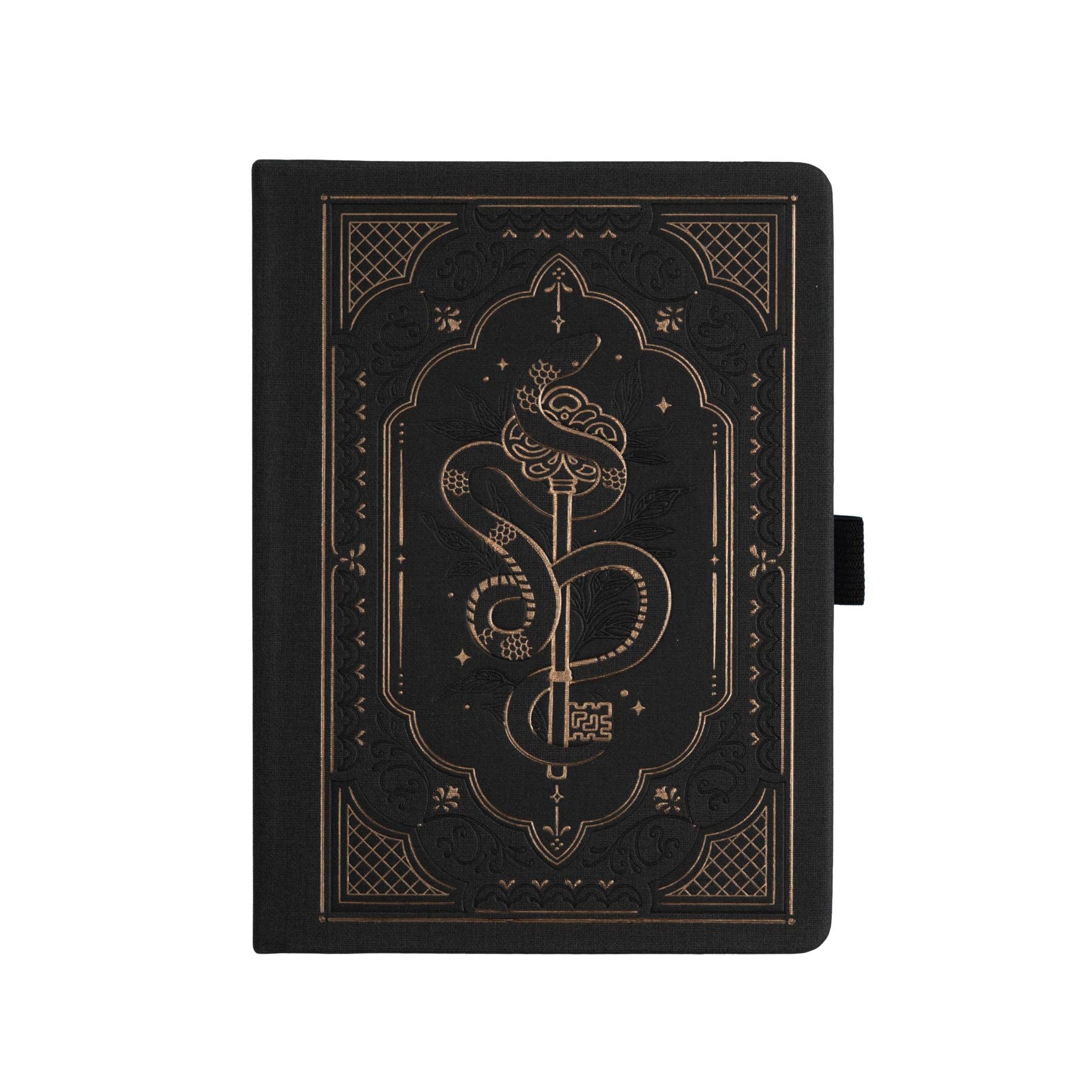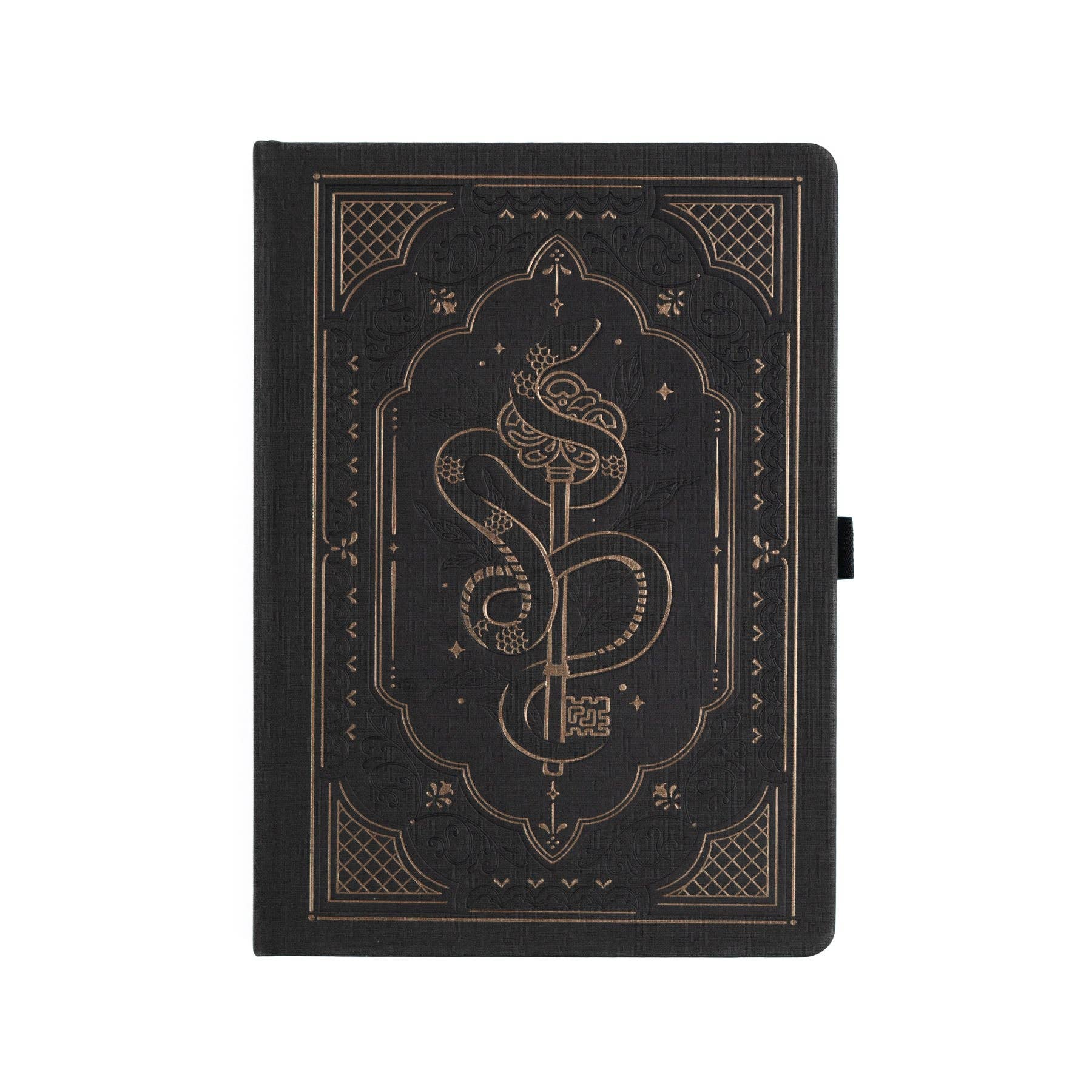 Unlock your creativity with the Coiled Key Dot Grid Notebook. Designed with a metallic serpent-and-key motif on black vegan leather, this notebook combines mystery with luxury. Featuring 160gsm dot grid pages, it’s perfect for journaling, sketching, and planning.