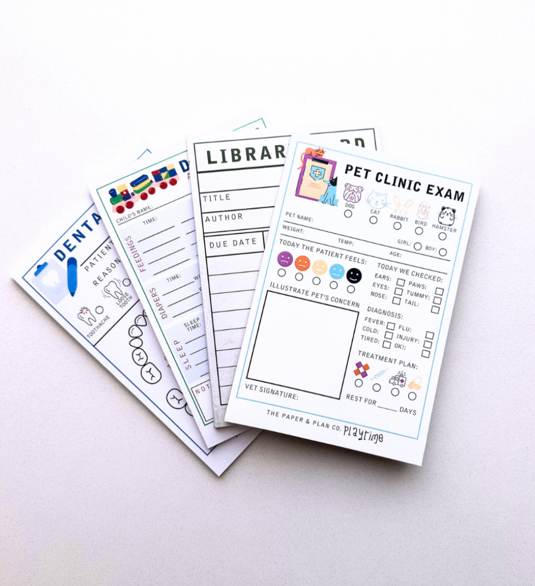 Playtime Pads —perfect for igniting your child's imagination and helping them role-play their way to numerous adventures! Let them be a veterinarian, librarian, daycare provider or dentist today and discover new possibilities tomorrow! Let their creativity run wild and have some fun!