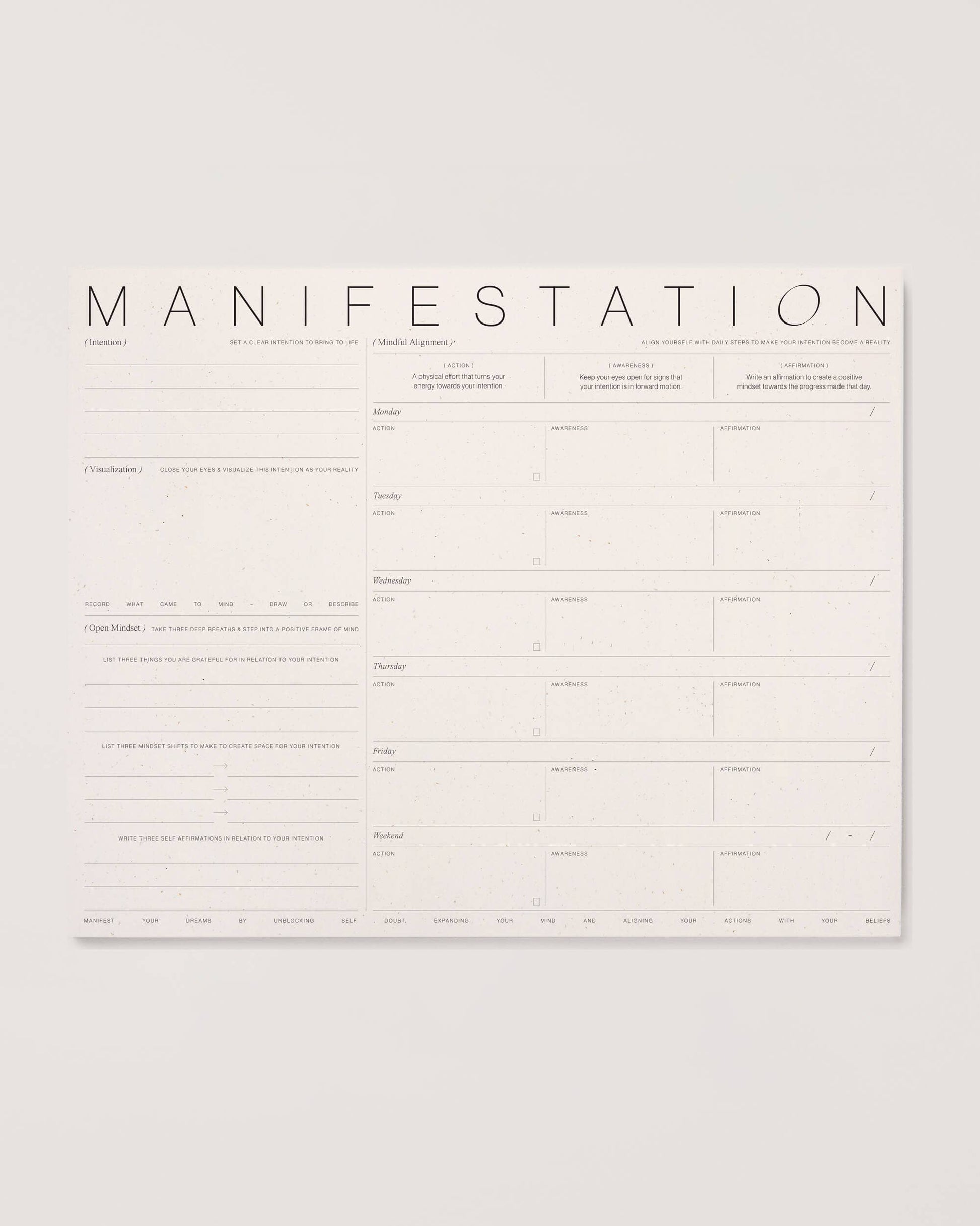 When your goals start to feel overwhelming, start here. The problem isn't that your dreams are too big, it's that you don't have a clear and easy to follow system to achieve them. A cross between a goal tracker and weekly planner, the Manifestation Pad guides you in breaking down your aspirations into manageable daily steps. From setting clear goals to identifying actions to take, each day you'll be held accountable and feel empowered to take one step towards your goal.