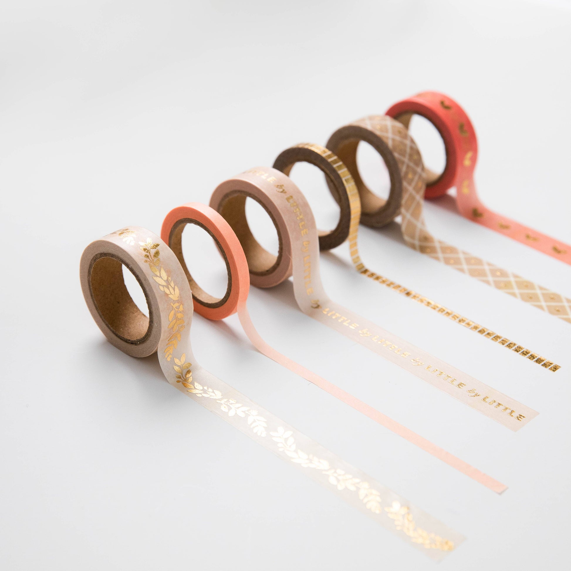 - Six rolls of high-quality, washi-style tape–4 standard rolls (10m x 15mm) and 2 thin rolls (10m x 5mm)