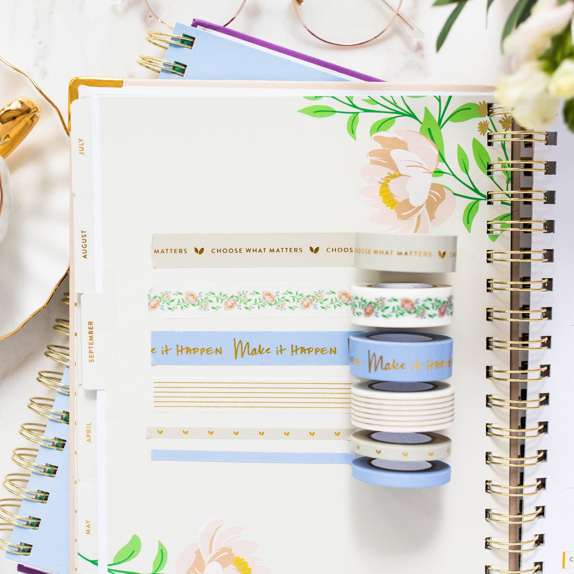 This set of six washi tape rolls (4 standard rolls and 2 thin rolls!) will help you customize your planner, notepads, journals, and more.